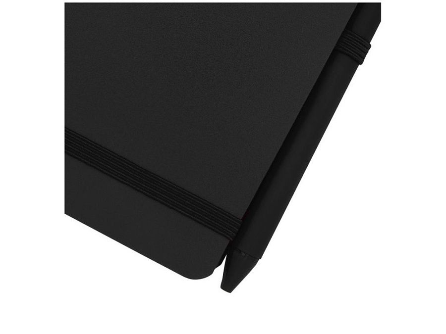 Блокнот Thalaasa формата A5 в твердой обложке изготовлен из переработанного океанического пластика и содержит 80 линованных листов кремовой бумаги плотностью 70 г/м². Блокнот имеет закругленные углы, эластичную застежку и петлю для ручки. Шариковая ручка с черными чернилами также изготовлена из переработанного океанического пластика. Длина непрерывной линии: 1000 метров. Размер пера: 1,0 мм.