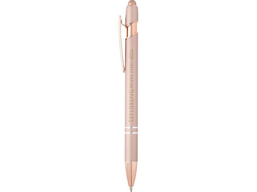 Шариковая ручка Nanna с покрытием из розового золота имеет корпус из переработанного алюминия и сенсорный стилус из силикона. Переработанный алюминий уменьшает количество отходов на свалках и помогает сохранять природные ресурсы для сокращения выбросов парниковых газов. Цвет чернил: синий. Длина непрерывной линии: 800 метров. Размер пера: 1,0 мм. Recycled Aluminium.