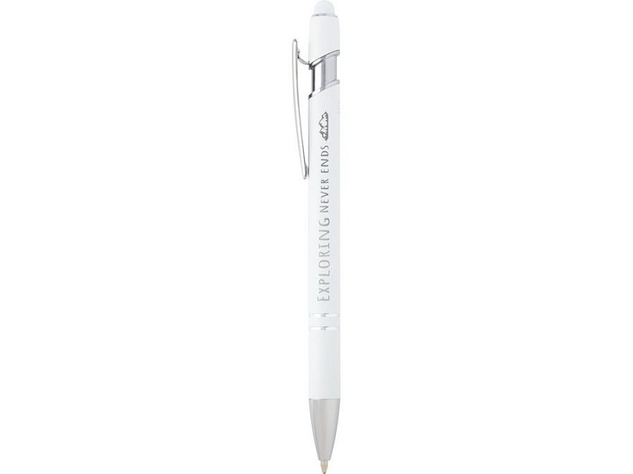 Шариковая ручка Kish с серебряным покрытием имеет корпус из переработанного алюминия и сенсорный стилус из силикона. Переработанный алюминий уменьшает количество отходов на свалках и помогает сохранять природные ресурсы для сокращения выбросов парниковых газов. Цвет чернил: синий. Длина непрерывной линии: 800 метров. Размер пера: 1,0 мм. Recycled Aluminium.