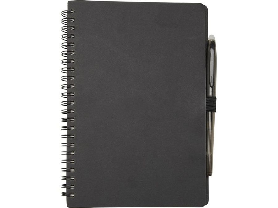 Многоразовый набор из ручки и блокнота в мягкой обложке из каменной бумаги. Блокнот имеет обложку из картона, закругленные углы и 32 листа линованной бумаги плотностью 120 г/м². В производстве каменной бумаги не используется дерево, а на сам процесс изготовления затрачивается гораздо меньше энергии в сравнении с производством переработанной или целлюлозной бумаги. Сзади имеется карман для хранения черной протирочной ткани (входит в комплект). Ручка из переработанного пластика с стираемыми чернилами, прозрачным корпусом, белым ластиком сверху и однотонной цветной рукояткой. Цвет чернил: черный. Длина непрерывной линии: 250 метров. Размер пера: 0,7 мм.