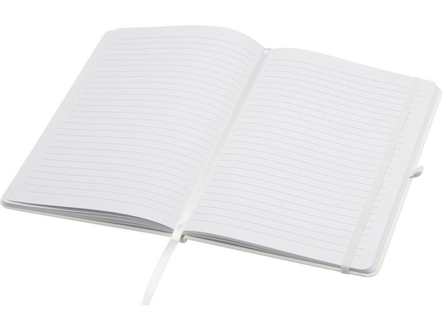 Блокнот Teak формата А5 в твердой обложке из картона с закругленными углами — это не только необходимая вещь в офисе, но и прекрасная возможность для продвижения вашего бренда. В блокноте 96 линованных листов бумаги плотностью 70 г/м2 и мягкая на ощупь обложка. В комплект входит петля для ручки, эластичная застежка и закладка-ленточка. Переработанная бумага.