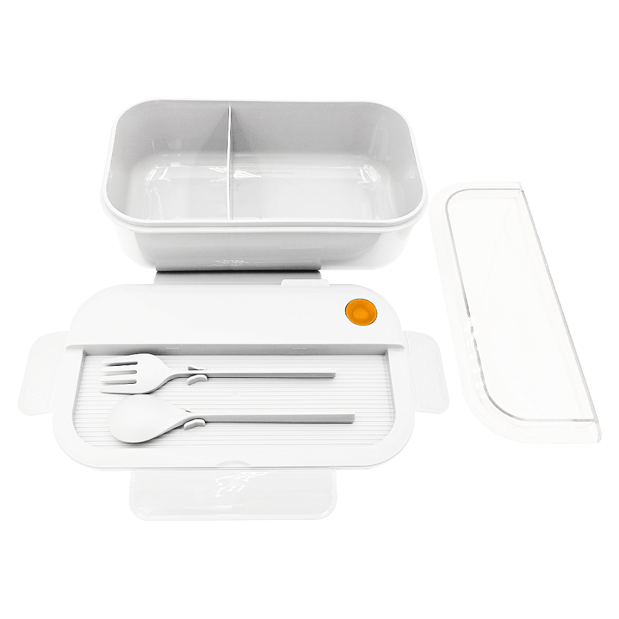 Не знаете что подарить? Подарите заботу о ваших сотрудниках или партнерах, ведь правильное питание залог здоровья на долгие годы. Наш контейнер для еды пригодится в деловой поездке, на даче, в лесу и на рыбалке. Еда из контейнера не протечет, благодаря силиконовым вставкам на крышке. Контейнер поделен на два сегмента, для удобного разделения еды. В комплект входят вилка и ложка, емкость 1100 мл. Допускается разогревать еду в микроволновой печи прямо в контейнере. Упакован в полиэтиленовый пакет