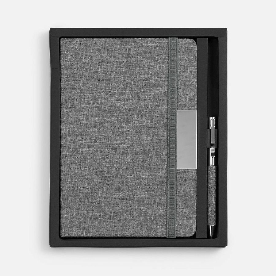 упаковка: 19,3х23,6х1,7 см; блокнот: 21х14,6х1,1 см; ручка: 13х1 см