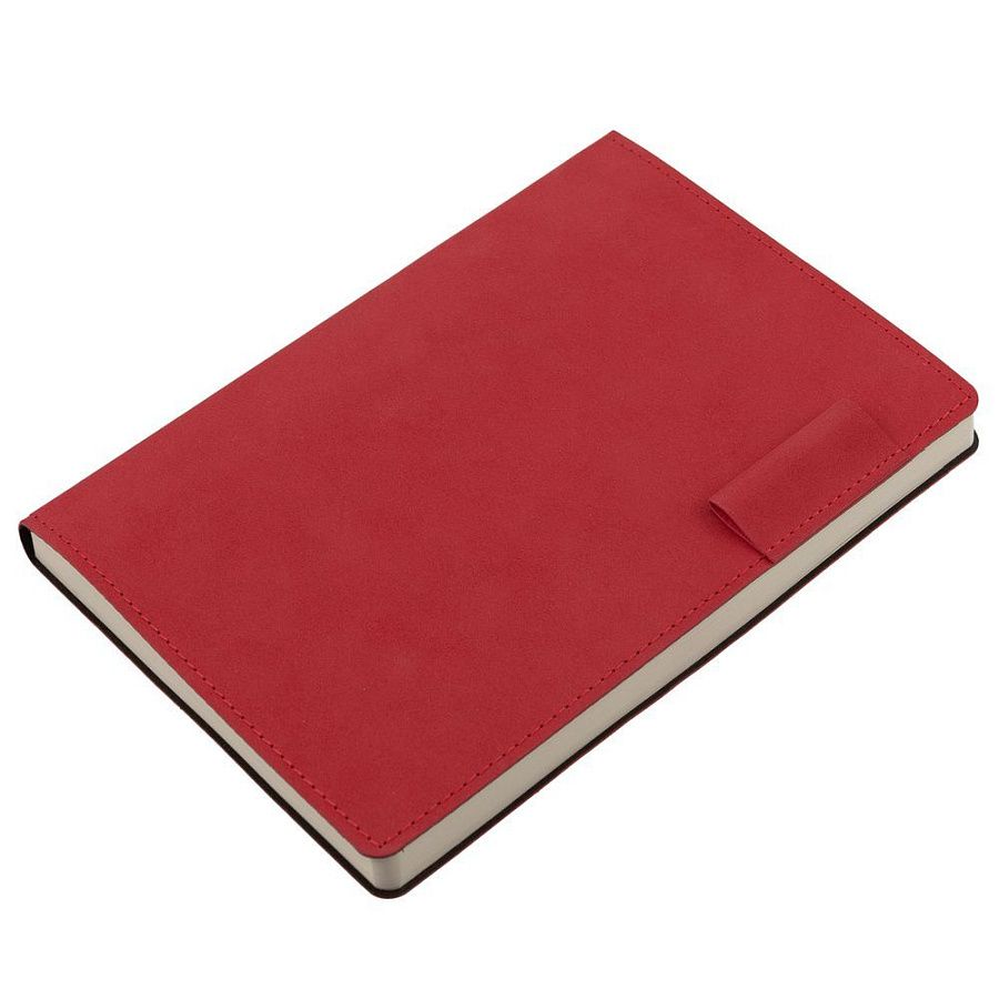 Ежедневник с гибкой обложкой, выполнен из материала Nubuck, красный РР, дополнен петлей-лейблом для ручки и ляссе в цвет материала.