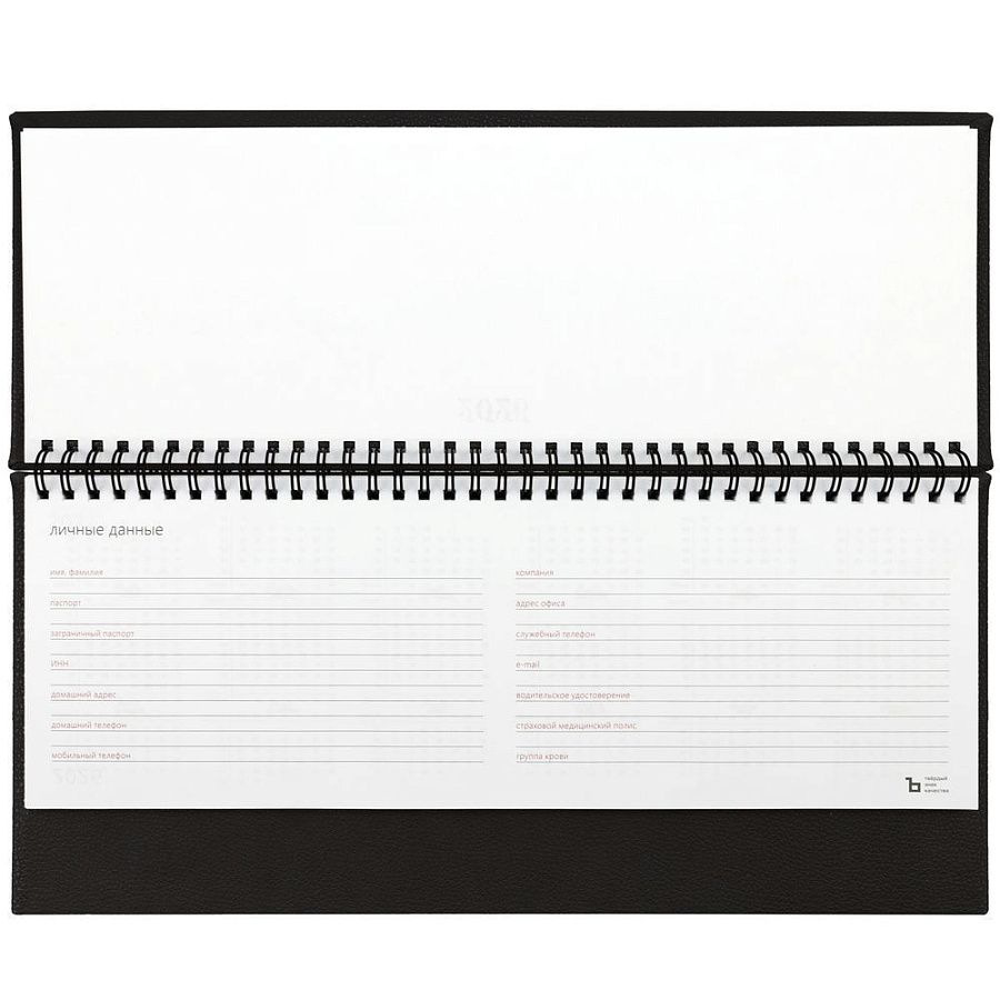Планинг с твердой обложкой с поролоном, выполнен из материала La Fite, черный АА.
