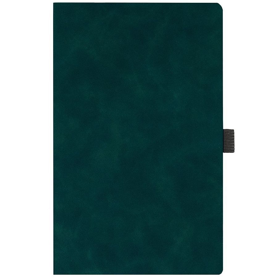 Ежедневник с гибкой обложкой, выполнен из материала Nubuck Touch, зеленый VV, дополнен ляссе и петлей-резинкой для ручки черного цвета.