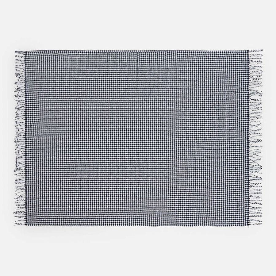 Графичный узор «гусиная лапка» (или «pied-de-poule») превращает изделие в изысканный интерьерный акцент, а бахрома добавляет ему элегантности и завершенности. Это воплощение безупречного вкуса и дань вневременной классике.