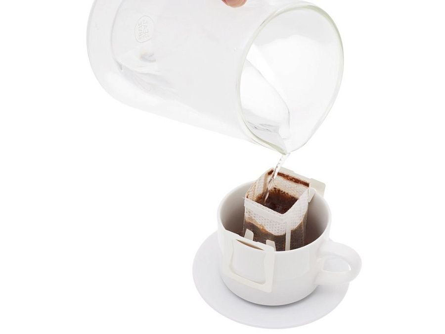 Как заварить: откройте дрип-пакет, расправьте ручки и зафиксируйте на чашке, залейте 150–200 мл воды температурой 90–95 °C в несколько проливов.