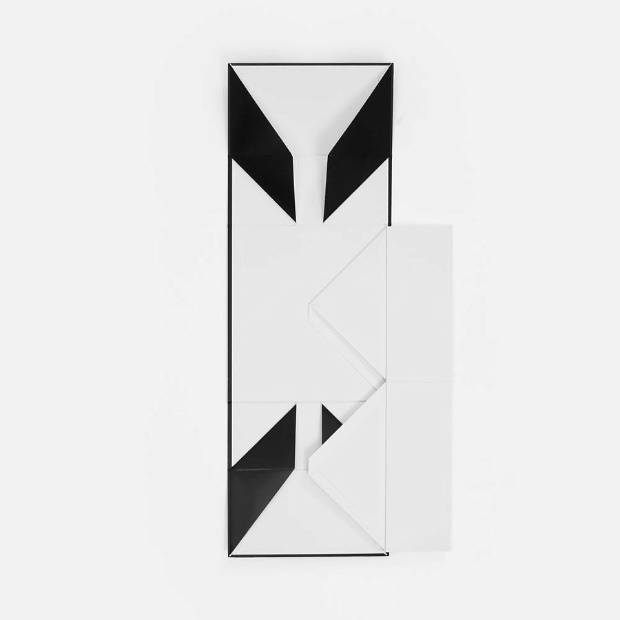 Коробка из переплетного картона 2 мм с оригинальной конструкцией: две симметричные створки открываются, создавая эффектную презентацию содержимого. Складная система на предустановленный двусторонний скотч делает сборку коробки быстрой и интуитивно понятной.