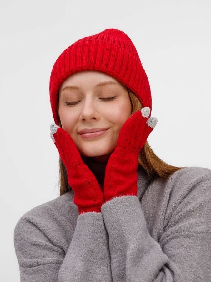 Комплект из шапки-бини и сенсорных перчаток Spotti сочетает современный дизайн с практичностью.
