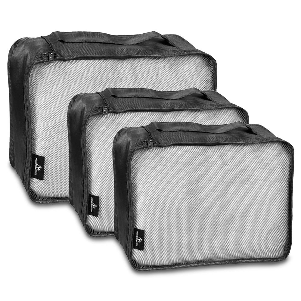 - Универсальный размер: комплект из одного большого (26х35х12 см) и двух поменьше (20,5х29х12 см) чехлов подходит для различных видов багажа, включая чемоданы, рюкзаки и сумки.