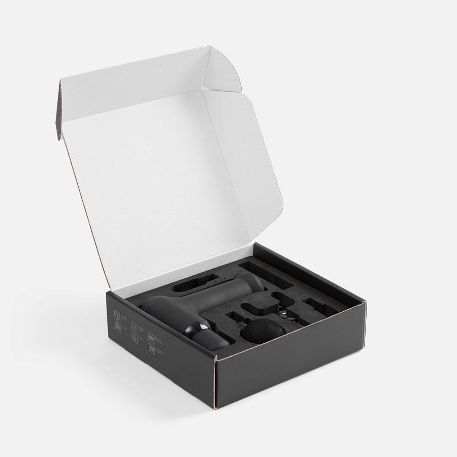 Конструкция массажера выполнена в форме мини-пистолета с тактильно приятным матовыми покрытием и эргономичной ручкой: его удобно держать и просто использовать благодаря кнопочной системе управления.
