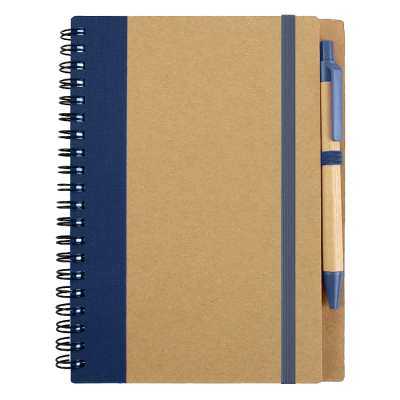 Спиральный блокнот в твёрдой крафтовой обложке с вертикальной тканевой вставкой. Оснащён ручкой в тон, закреплённой на боковой петле — всегда под рукой для быстрых заметок.