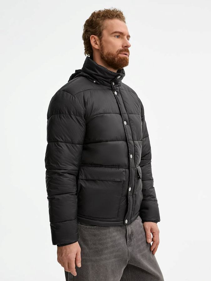 - Утепленные накладные карманы: два на кнопках с вертикальным входом и два с боковым — итого 4 кармана